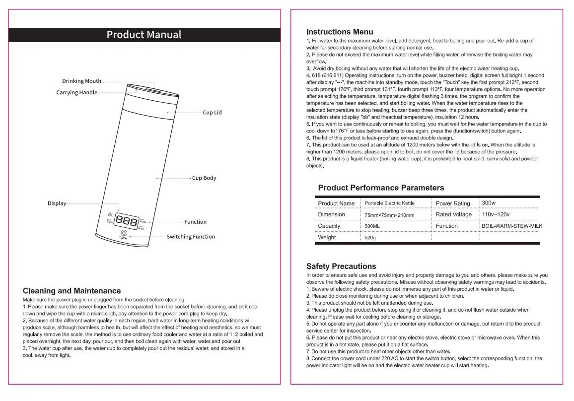 - Three layer anti scald cup body, boiling at 100 ° C without burning hands, with hollow insulation and ABS anti scald outer layer for dual protection